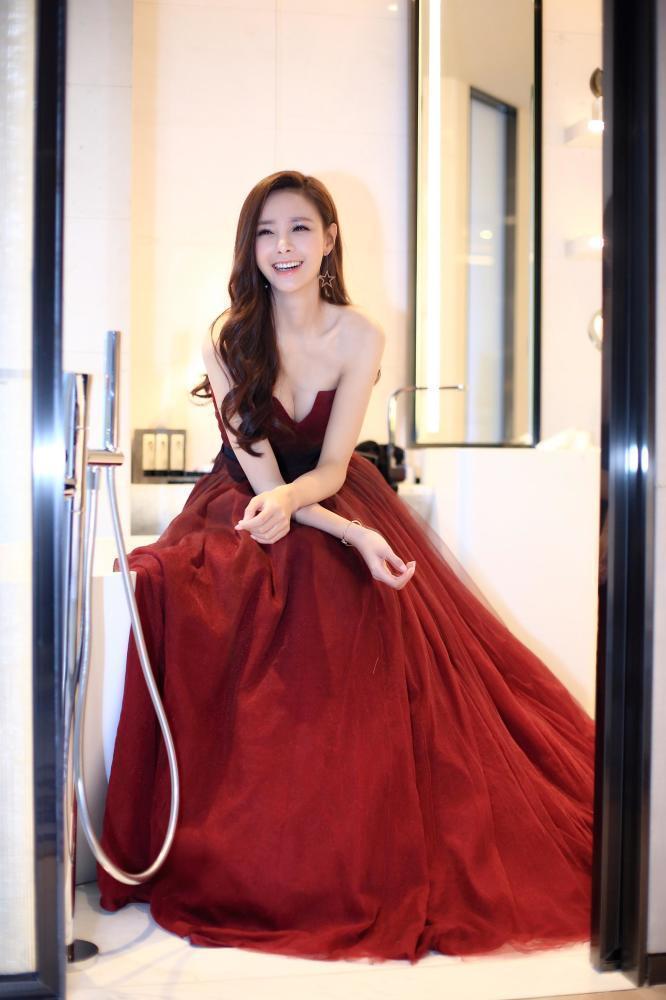 2月19日一組沈夢辰的美照曝光,照片中沈夢辰身穿紅色的低胸禮裙,她大秀玉肩事業(yè)線笑容迷人。