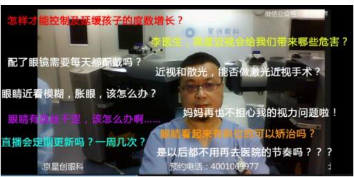 在此背景下,「星創(chuàng)視界」官方微信特別開(kāi)設(shè)“直播室欄目”。第一期節(jié)目由星創(chuàng)眼科院長(zhǎng)李雪非坐陣直播間,開(kāi)設(shè)網(wǎng)上視力健康課堂,首期高達(dá)1500多人同時(shí)在線,題目包羅萬(wàn)象,如有24歲患者詢問(wèn),近視200度究竟該不該戴眼鏡?更多人問(wèn)藍(lán)光如何傷害視力,是深層還是淺層?藍(lán)光鏡片到底有沒(méi)有效?還有媽媽擔(dān)心小孩看ipad近視加深,該如何預(yù)防?現(xiàn)場(chǎng)人氣爆棚,透過(guò)直播,也感受到民眾對(duì)視力問(wèn)題的迫切重視!