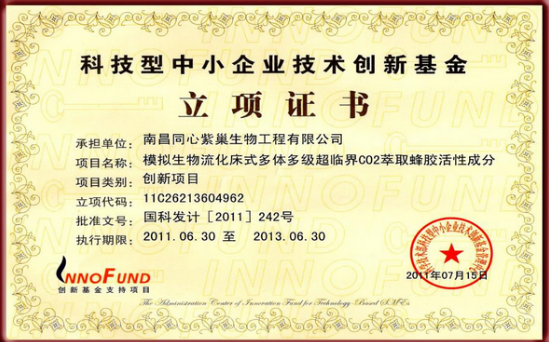 南昌同心紫巢多體多級(jí)超臨界CO2萃取技術(shù)榮譽(yù)