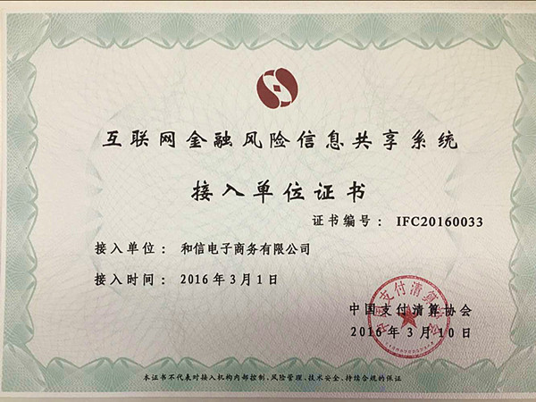 ? ? 近日,央行下屬的中國(guó)支付清算協(xié)會(huì)向國(guó)內(nèi)知名平臺(tái)和信貸發(fā)放了證書(shū),顯示和信貸平臺(tái)已成功接入中國(guó)支付清算協(xié)會(huì)互聯(lián)網(wǎng)金融風(fēng)險(xiǎn)信息共享系統(tǒng)(以下簡(jiǎn)稱“支清會(huì)互金系統(tǒng)”),正式成為第二批成員,從此和信貸邁出了支持中國(guó)征信業(yè)發(fā)展的第一步。