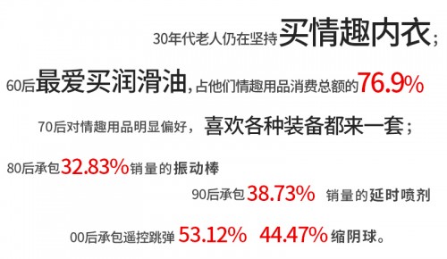 2018年初,天貓和淘寶公開了自己的情趣產(chǎn)品大數(shù)據(jù),囊括了國(guó)內(nèi)80%以上的情趣用品銷量,更多的年輕80、90消費(fèi)者聚焦在自己喜歡的情趣產(chǎn)品(例如震動(dòng)棒、延時(shí)噴劑、縮陰球),越來(lái)越多的年輕消費(fèi)者將直面性關(guān)系和性需求,從數(shù)據(jù)來(lái)看,不同時(shí)代的人正慢慢解放著自己的性生活。