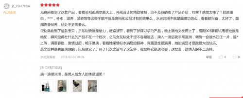 榮膺2016年潤(rùn)滑液類目銷量第三的澀井潤(rùn)滑液,在全年銷售60000+筆的情況之下0差評(píng),不少消費(fèi)者評(píng)價(jià)說(shuō)“潤(rùn)潤(rùn)滑滑”“絲毫沒有不適感”,“我跟媳婦用了都滿意”。