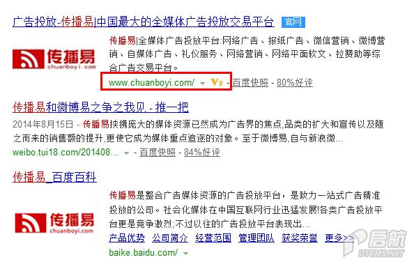 而傳播易廣告投放平臺所認(rèn)證的等級為V3,是目前百度信用V認(rèn)證中的最高等級,代表該企業(yè)有優(yōu)良信譽(yù)積累,值得信任。