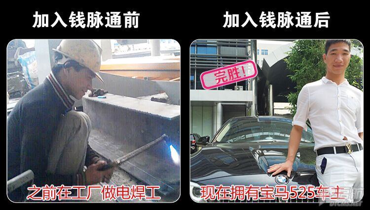 感謝錢脈通創(chuàng)始人凌辰老師,還有我們團(tuán)隊的總裁黃俊老師,以及我在錢脈通所有幫助過我的家人們!謝謝你們!非常感謝,一年時間讓我從電焊工變成寶馬車主,人生還有那么多個一年,還能不斷的突破自己。想改變,就趁早吧!拒絕拖延,拋棄借口,你一定可以成功!