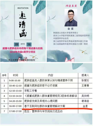 2018年9月16日,在浙江大學醫(yī)學院附屬第四醫(yī)院舉辦了“肥胖癥非藥物干預(yù)進展與實踐”學習班。此次活動由浙江大學醫(yī)學院附屬第四醫(yī)院承辦,義烏市醫(yī)學會協(xié)辦,旨在提高醫(yī)護人員對超重與肥胖癥的非藥物干預(yù)水平。非常榮幸,愛尚輕團隊受邀參加。
