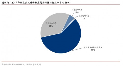*2017年維生素及膳食補(bǔ)充劑在保健品行業(yè)中占比59%