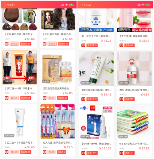 2.0最大的改變是新增了購物模塊。趣走與淘寶、天貓、拼多多、京東等平臺合作,提供一站式購物服務,在趣走就能搜索到全網的商品,另外還能查看同一商品在不同平臺的價格,直接比價,擇優(yōu)下單。