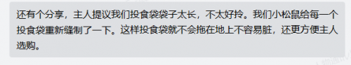 除了考慮到投食袋拖到地上會(huì)臟以外,細(xì)心的班班還觀察到有一些小朋友會(huì)被帶子絆倒,于是班班帶著店內(nèi)的小松鼠把投食袋都“改造”了一番。