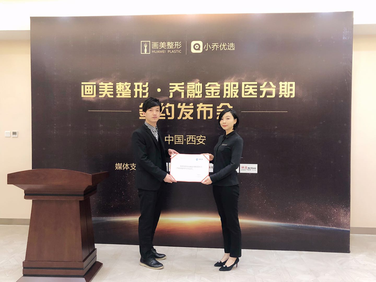 2019年3月26日上午,喬融與西安畫美醫(yī)療美容醫(yī)院簽約戰(zhàn)略合作。旖美科技是民營(yíng)醫(yī)療行業(yè)綜合解決方案提供商,喬融是其分期消費(fèi)服務(wù)品牌,喬融中原區(qū)域總監(jiān)徐冰森、畫美醫(yī)療美容醫(yī)院院長(zhǎng)付青及十余家媒體均出席此次簽約儀式并發(fā)表重要講話。