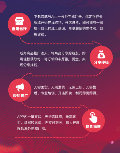 海豚號創(chuàng)始團(tuán)隊(duì)對這一平臺的使命,定位為:全球好貨,海囤到家。在這一使命的驅(qū)動下,海豚號平臺不斷對模式進(jìn)行升級,給自身提出了更高的標(biāo)準(zhǔn)和要求。