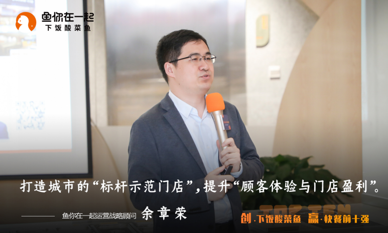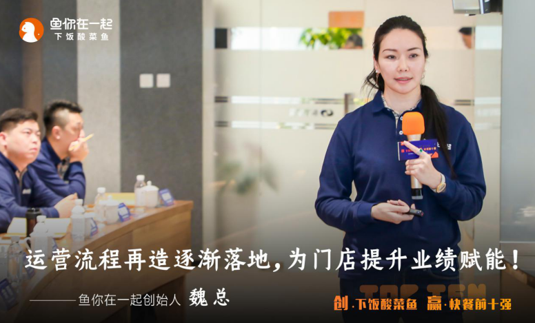 除此之外,魚你在一起品牌營運中心總監(jiān)、外賣策略總監(jiān)、華南、北京等運營中心總監(jiān)也就區(qū)域運營和單店業(yè)績進行了講解,并希望大家從營運流程再造、標準化落地、統(tǒng)一裝修、門店運營、外賣等方面做起,切實將產(chǎn)品穩(wěn)定、服務提升、標準統(tǒng)一、流程統(tǒng)一等全面落實,助力品牌夯實根基,提升綜合實力,提升終端門店業(yè)績。