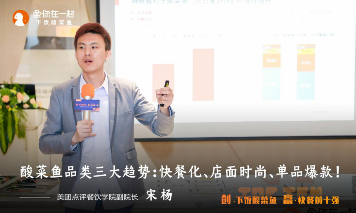 “目前,全國酸菜魚門店數(shù)量達到3萬家,處于行業(yè)的爆發(fā)期,成為餐飲行業(yè)新風口?!泵缊F點評餐飲學院副院長宋楊,給大家詳細解讀了《2018酸菜魚市場發(fā)展報告》。他表示,酸菜魚熱度已超黃燜雞、烤魚、水煮魚、麻辣燙等品類,成為當下較為火爆的餐飲品類。魚你在一起憑借精準的酸菜魚快餐賽道的布局,已從門店數(shù)量上成為品類的頭部品牌!