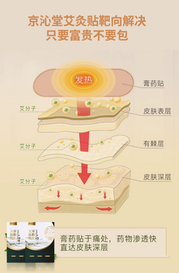 產(chǎn)品原材能從根本上決定產(chǎn)品質(zhì)量,京沁堂采用了“公司+基地+車間”的三位一體化原料生產(chǎn)模式,萬畝蘄艾生產(chǎn)田與其他搭配藥材生產(chǎn)田有專業(yè)人員悉心種植。順應天時,無農(nóng)藥,無化肥,自然生長,汲取天地正氣,遵循原生態(tài)的生長模式,陳艾加味,才能保證藥效強力滲透。熱敷包的設計模式也是一大亮點,以溫治病,以溫驅(qū)邪,不至燥而傷陰,長效持久發(fā)熱又能保證藥效強力滲透。產(chǎn)品創(chuàng)新的以貼劑形式,告別傳統(tǒng)艾灸的煙霧繚繞,并會在皮膚上留下灸痕甚至燙傷的種種狀況。方便攜帶,操作簡單,老少皆宜,可謂艾灸行業(yè)的一項重大革新。