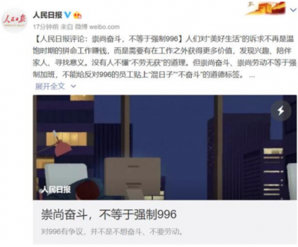 關(guān)于996,人民日?qǐng)?bào)曾專(zhuān)門(mén)撰寫(xiě)評(píng)論《崇尚奮斗,不等于強(qiáng)制996》:人們對(duì)美好生活的訴求不再是溫飽時(shí)期的拼命工作賺錢(qián),而是需要有在工作之外獲得更多價(jià)值,發(fā)現(xiàn)興趣、陪伴家人、尋找意義。但現(xiàn)實(shí)卻很扎心,這是一個(gè)不努力不拼搏就隨時(shí)有可能被淘汰的時(shí)代,所以自覺(jué)或不自覺(jué)的996已經(jīng)成為常態(tài)。長(zhǎng)期的高壓工作,缺乏休息,沒(méi)有時(shí)間去運(yùn)動(dòng)鍛煉......伴隨而來(lái)的就是身體開(kāi)始出現(xiàn)各種各樣的小毛病,比如視力越來(lái)越差、頸椎病、腰椎間盤(pán)突出、脫發(fā)、失眠......還有最常見(jiàn)的“過(guò)勞肥”。