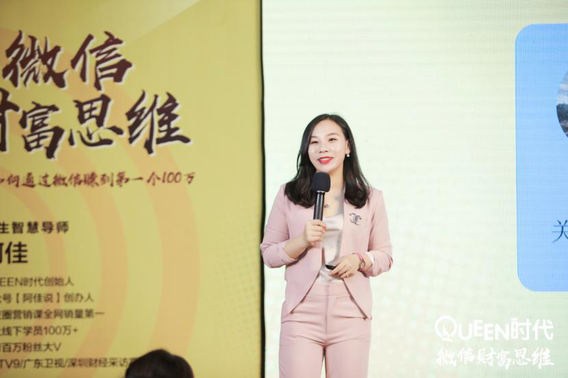 本次活動是主要是由Queen 品牌創(chuàng)始人阿佳老師的精彩授課活動,傳授我們一個創(chuàng)新的微信財富思維,帶領(lǐng)我們見識一個全新的、未知的、具有莫大商機和潛能的微信商業(yè)模式。