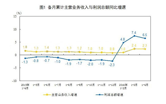 據(jù)國家統(tǒng)計(jì)局工業(yè)司何平博士解讀表示,14月份,中國規(guī)模以上工業(yè)企業(yè)利潤同比增長6.5%,增速比13月份回落0.9個(gè)百分點(diǎn)。其中,4月份利潤同比增長4.2%,增速比3月份回落6.9個(gè)百分點(diǎn)。綜合看,中國工業(yè)企業(yè)效益仍呈現(xiàn)出積極變化。