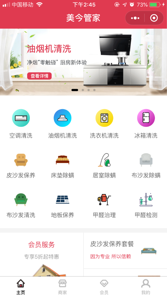 美今管家是深圳美今家居生活服務(wù)有限公司精心打造的家庭生活服務(wù)平臺,提供家電清洗、家居保養(yǎng)、居室除螨、甲醛治理等服務(wù),于2015年9月正式推出,主要服務(wù)于家具/建材/家電等商家和家庭用戶。
