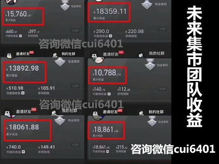 未來集市最大的亮點是我們可以通過這個APP平臺創(chuàng)業(yè),因為成為店主后就可以分享商品賺錢,也可以通過邀請店主加入來賺傭金提成,回報還是非常不錯的,現(xiàn)在項目剛啟動 加入正是好時候 能讓你在風(fēng)口上賺一把 ,想加入的咨詢微信 cui6401 帶你一起飛。官方一手資源。未來集市高層團隊。