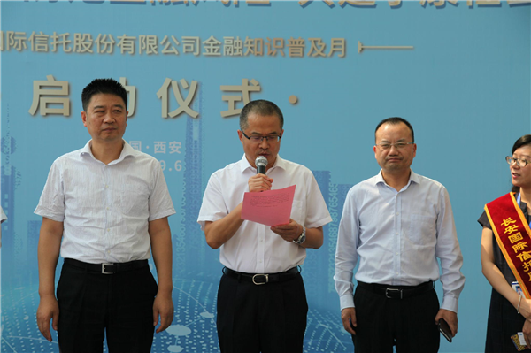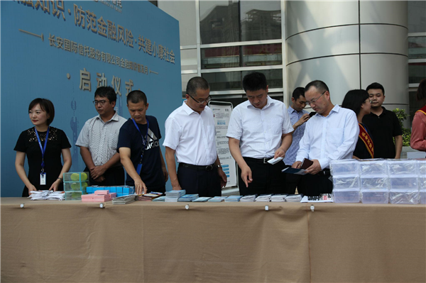 長安信托股份有限公司為落實“一行兩會”關(guān)于金融知識普及月活動的要求,于9月6日在高新國際商務(wù)大廈廣場舉辦了以 “普及金融知識 防范金融風(fēng)險 共建小康社會”為主題的金融知識普及月啟動儀式。長安國際信托公司領(lǐng)導(dǎo)、消保辦、各部門消保專員及發(fā)行部門員工代表出席本次活動。