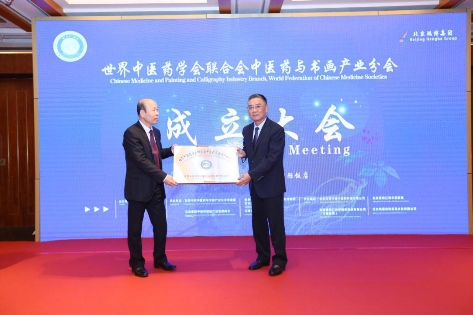 世界中醫(yī)藥學(xué)會(huì)聯(lián)合會(huì)中醫(yī)藥與書畫產(chǎn)業(yè)分會(huì)成立大會(huì)于2019年10月18日上午在北京召開。此舉,標(biāo)志著世界有了從事“中醫(yī)藥書畫”的國(guó)際性組織,拉開了建立中醫(yī)藥書畫體系的序幕,用書畫藝術(shù)表現(xiàn)中醫(yī)藥文化成為又一弘揚(yáng)和發(fā)展中醫(yī)藥文化的重要載體。