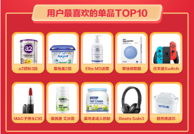 本次海囤全球日中,在用戶下單top10的單品榜單中,a2奶粉3段引領(lǐng)風(fēng)騷,愛他美2段緊跟其后,還有Elta MD潔面、蒂佳婷面膜、任天堂switch、MAC子彈頭口紅等產(chǎn)品也榮膺消費者最愛。