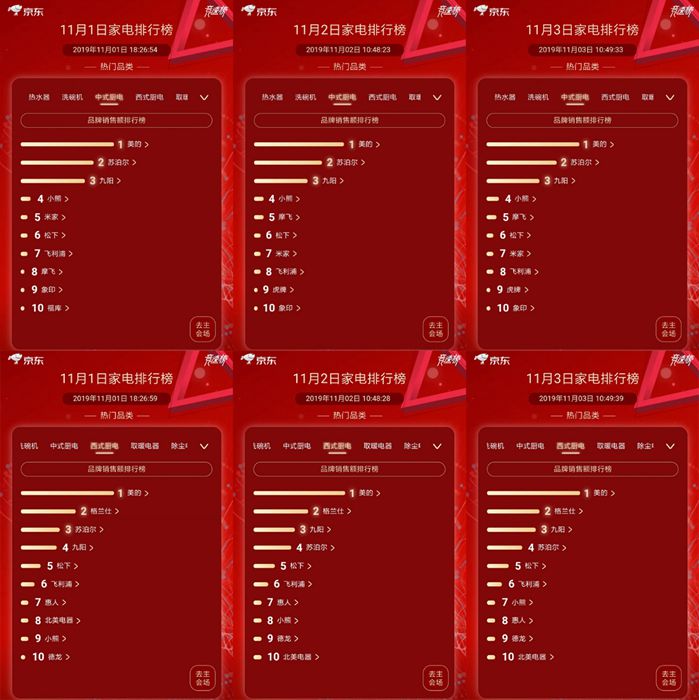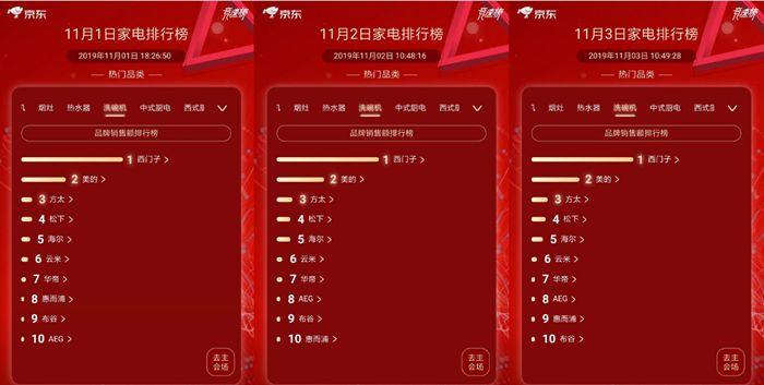 縱觀1日3日的京東家電競速榜,在廚電幾大品類中美的“每榜必上”,且排名最低也是第三位,成為廚電領(lǐng)域中的最大贏家。值得注意的是,今年初與京東簽署了戰(zhàn)略協(xié)議,并在京東平臺獨家首發(fā)新品的高端德國家電品牌AEG,也在進駐京東的首個11.11便進入了洗碗機前十名。這從側(cè)面證明,京東家電不僅618和11.11是家電主場,同時也成為國內(nèi)外高端家電的首選始發(fā)地。