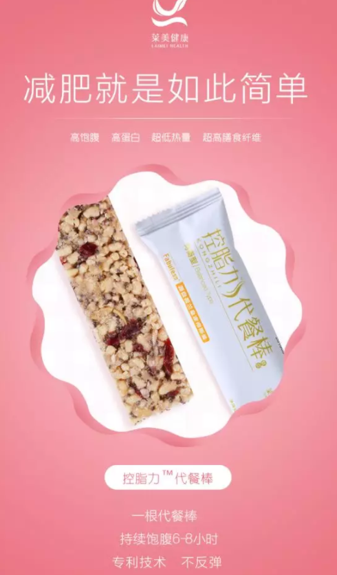 但是對于更多胖友來說 代餐棒依舊是一個(gè)“神秘”的減肥方式 它到底科學(xué)嗎?代餐等于節(jié)食嗎? 今天小編就來為你們揭開代餐棒的神秘面紗 一一解答你對它的所有疑問 控脂力代餐棒究竟是什么? 用來代替正餐的食物,同時(shí)熱量又比正餐的熱量更低,但依然能保證較為全面的營養(yǎng)元素,并且提供足夠的飽腹感。因此胖友們可以通過代餐來減少每天的熱量攝入,達(dá)到減肥的效果。代餐可以說是健康又營養(yǎng)的減肥“利器”啦!