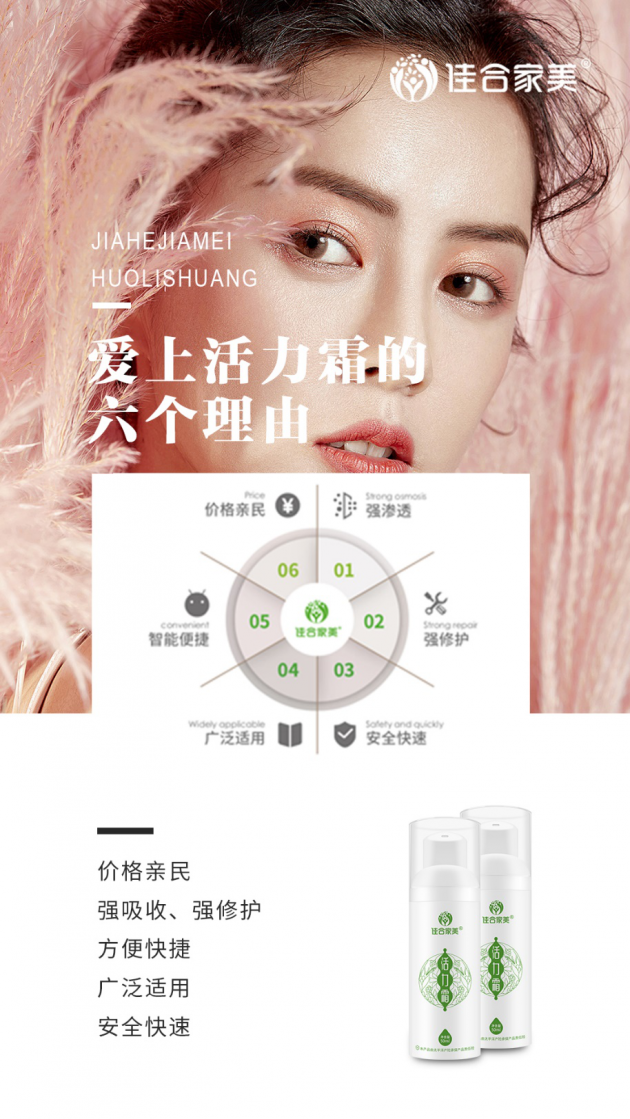 什么樣的禮物,能夠讓“她”感受到你的愛呢?愛美是每一個女人的追求,健康是人們都提倡的理念。以佳合家美活力霜為代表的健康養(yǎng)護產(chǎn)品,就是能夠?qū)⑦@兩種需求完美融合的最佳禮物之一。當“她”感到壓力山大的時候,佳合家美活力霜能夠及時為“她”補充能量,激發(fā)細胞活力,隨時保持優(yōu)雅。