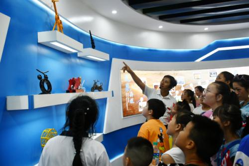 “你看,我就是在這里工作?!币蛔哌M(jìn)寬敞明亮的鋼鐵文化展廳,巨大的全景沙盤就吸引了孩子們的目光。每位家長主動化身為“講解員”,有的家長指著全景沙盤帶著孩子找自己工作的地方;有的家長指著展板上帶著“大紅花”的學(xué)子照片介紹“方威勵志獎學(xué)金”政策,激勵孩子努力學(xué)習(xí);有的指著榮譽(yù)獎牌自豪告訴孩子方大九鋼是一家有責(zé)任有擔(dān)當(dāng)了不起的企業(yè);還有的家長介紹起企業(yè)越來越美的環(huán)境,驕傲地告訴孩子經(jīng)過公司深度水處理過的廢水可以達(dá)到直接飲用的標(biāo)準(zhǔn)……父母們“講解”得聲情并茂,孩子們聽得津津有味,還時不時發(fā)出一陣陣驚嘆聲。