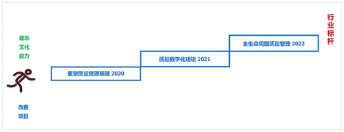 項目整體規(guī)劃三年,穩(wěn)步有序?qū)嵤簭氖灼诘睦砟顚?dǎo)入、文化滲透、能力提升及品控網(wǎng)搭建切入務(wù)實基礎(chǔ);再結(jié)合產(chǎn)品特性從統(tǒng)計控制、防呆防錯、標(biāo)準(zhǔn)化作業(yè)等方面探索專業(yè)質(zhì)量工具的實踐運用實現(xiàn)公司質(zhì)量數(shù)字化建設(shè);最后打破信息孤島,建立全面質(zhì)量管控網(wǎng)絡(luò),完成全價值鏈的大質(zhì)量體系搭建。擬通過三年時間,夯實技術(shù)、質(zhì)量管理基礎(chǔ),推動質(zhì)量想信息化、智能化升級,促進(jìn)成為行業(yè)標(biāo)桿。