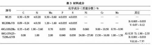 在圖1中,使用雙頭螺柱將排氣歧管固定在氣缸蓋上,雙頭螺柱及螺母使用的材料均為40Crl0Si2Mo,設(shè)計(jì)耐熱溫度都為700℃,螺栓機(jī)械性能等級(jí)為10.9級(jí),六角法蘭面螺母機(jī)械性能等級(jí)為10級(jí)。材料的耐熱性能與成分關(guān)系很大,表3為上述幾種材料的成分對(duì)比。