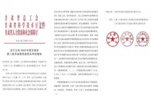 近日,從甘肅省總工會、甘肅省科學技術廳、甘肅省人力資源和社會保障廳傳來喜訊,經過逐級推薦、專家評審、社會公示,蘭州高壓閥門有限公司“煙氣裝置用特殊密封刀閘閥”成果榮獲第十三屆全省職工優(yōu)秀技術創(chuàng)新成果二等獎。